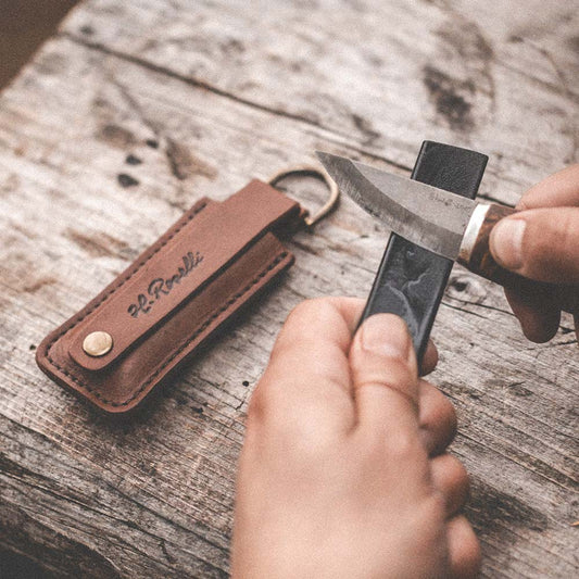 Schleifstein in Lederetui