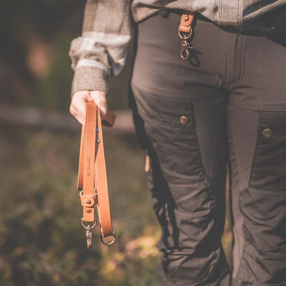 Handcrafted from premium greased leather from Tärnsjö. Hands-free control and easy to use. Perfect for hunters, with the option for personalized engraving.